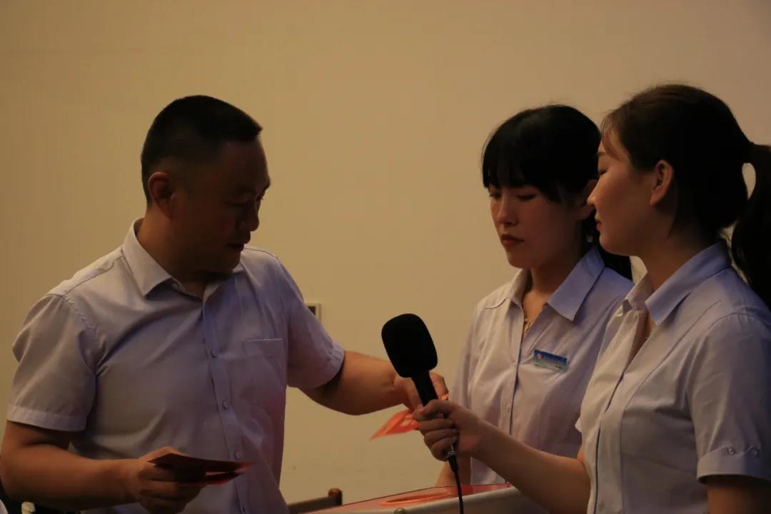 大会进行第五项,对第二季度积分管理表现优异的员工进行表彰。经过第三方的反复核算,获得一等奖的是于志香、郭孝梅、李庆伟,由孙志娟董事长为获奖者颁奖;获得二等奖的是高栋、王园园、张茹茹,由孙总为获奖者颁奖;获得三等奖的是周芝营、于华、周可,由张总为获奖者颁奖。