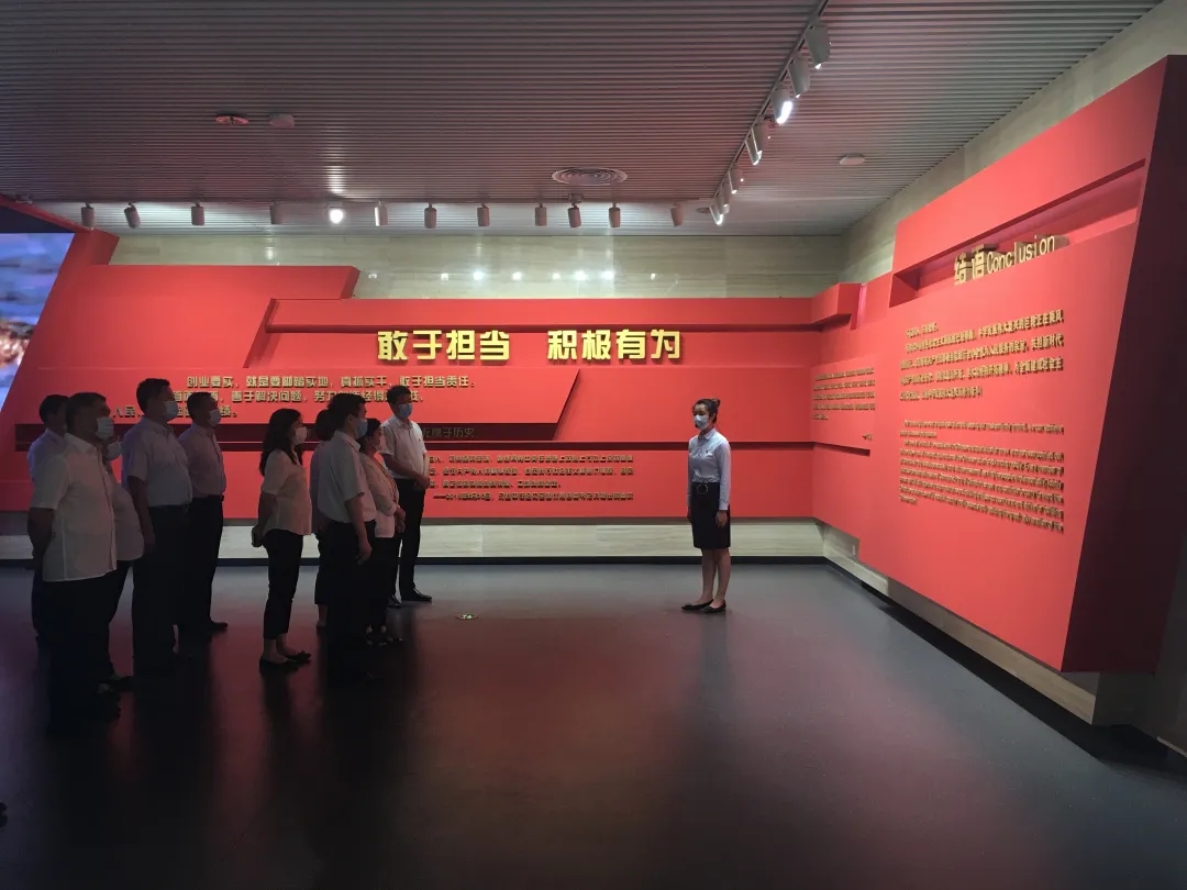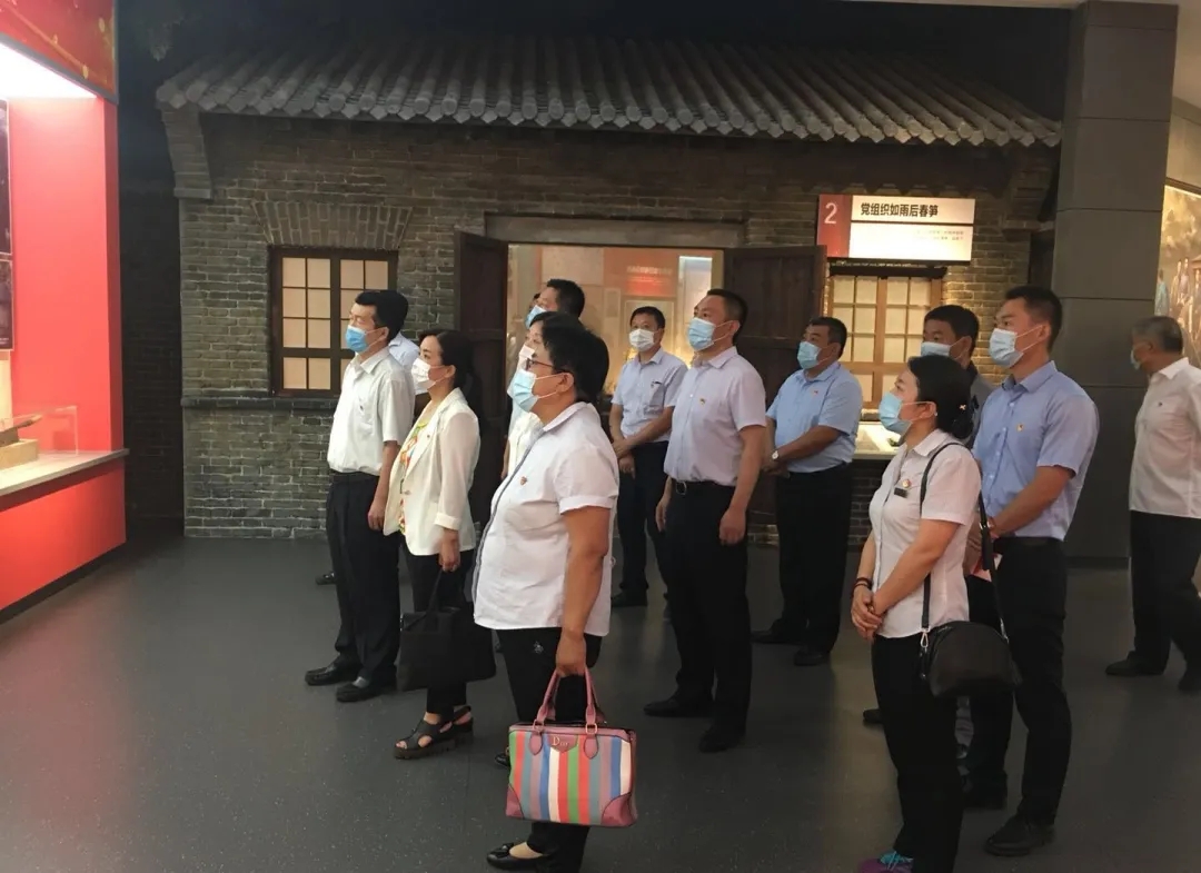 在展馆序厅,面对中国共产党党旗,市住建局领导带领全体党员重温入党誓词,牢记初心使命。