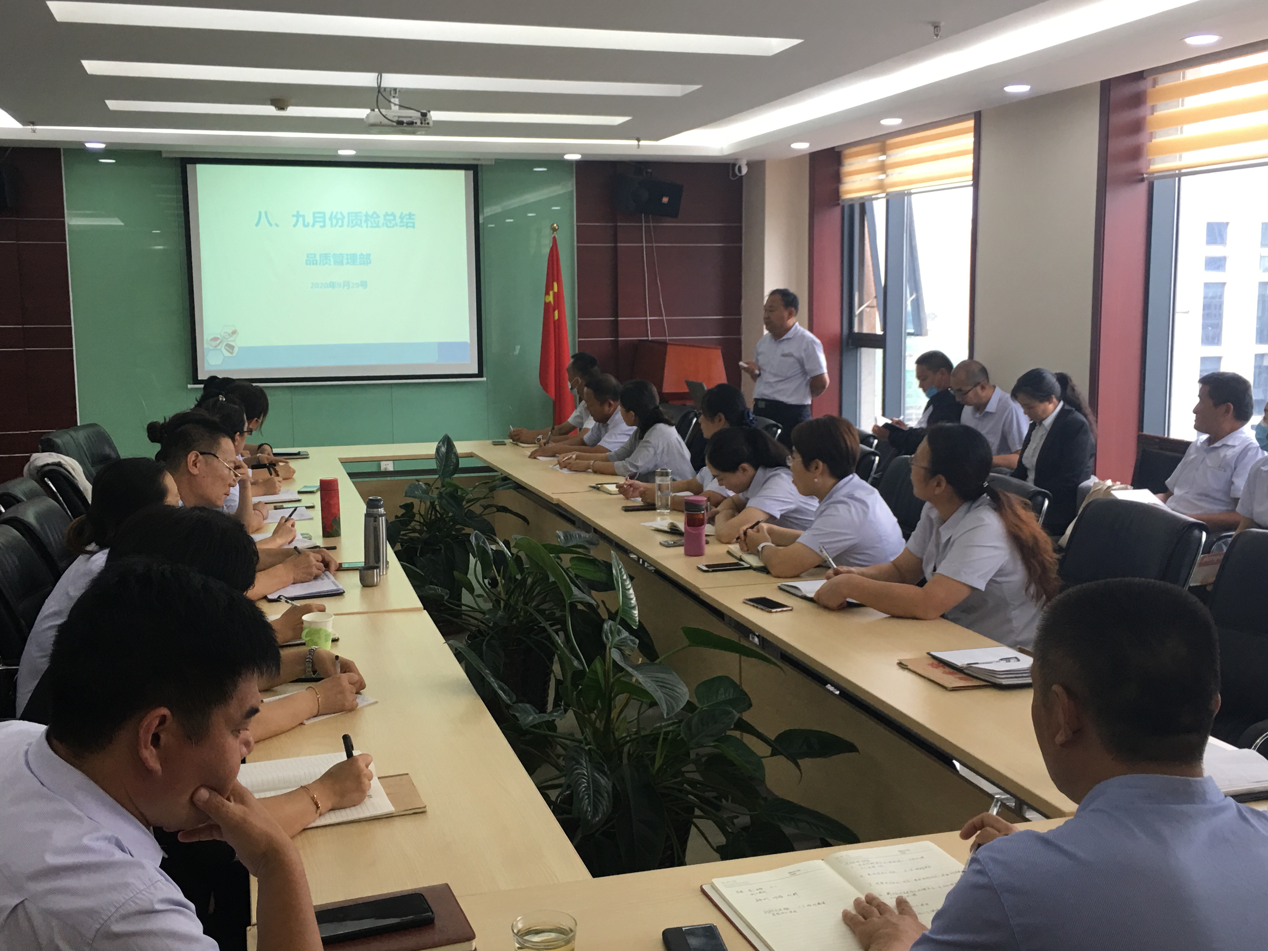 首先,由公司品质管理部经理黄梁柱对2020年8月、9月各项目的质检情况进行通报,并对2020年10月份的重点工作进行了布置。