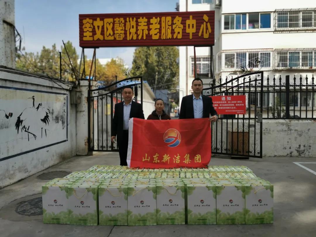 为了弘扬中华民族尊老、敬老的传统美德,倡导爱老、助老的新风尚,10月25日,山东新洁管理集团董事长孙志娟带队到奎文区馨悦养老服务中心开展九九重阳节公益活动,集团副总经理兼华宇人力资源公司总经理孙海平、董事长助理兼新洁物业执行总经理张勇涛出席本次活动。