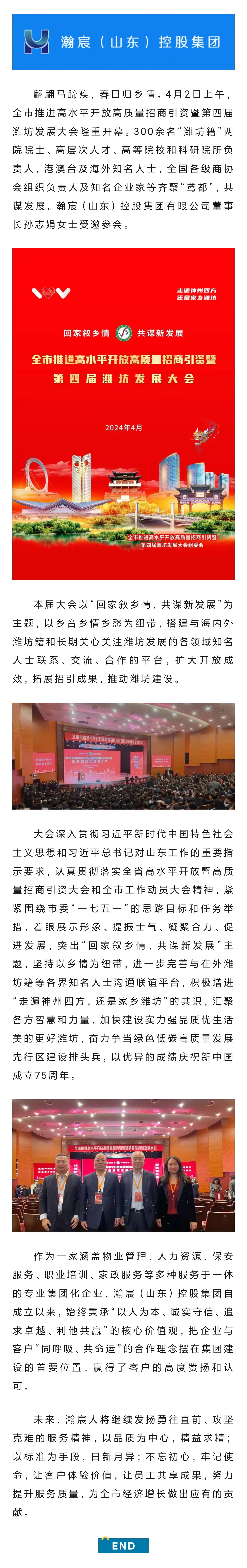 凝心聚力 共谋发展丨瀚宸(山东)控股集团董事长孙志娟女士受邀参加潍坊市推进高水平开放高质量招商引资暨第四届潍坊发展大会