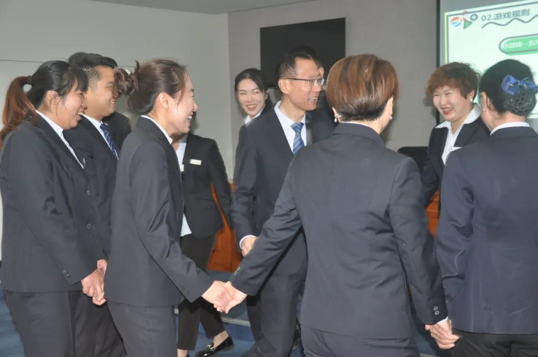 会前进行了热身运动,用游戏点名,是7或7的倍数的人都拍一下手,错的人参加玩游戏,大家都聚精会神,斗志高昂。